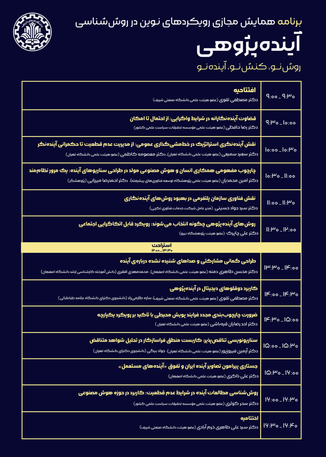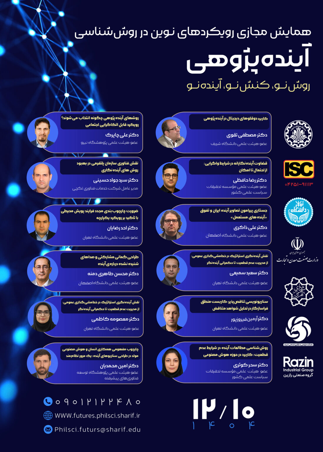 همایش حاضر به دنبال آن است که از رهگذر گفتوگویی علمی و میانرشتهای، مسیر شکلگیری نسل تازهای از روشهای آیندهپژوهی را ترسیم کند؛ روشهایی که بتوانند در جهان پرشتاب و دادهمحور امروز، به تصمیمگیری آگاهانه، سیاستگذاری هوشمند و ساخت آیندههای انسانیتر یاری رسانند.