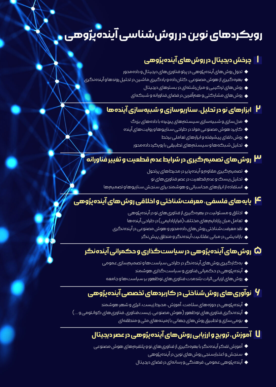 با تکیه بر آیندهپژوهی و تحلیل روندهای نوظهور، مسیرهای پیشرو شناسایی میشوند تا تصمیمهای امروز، آگاهانهتر و اثرگذارتر رقم بخورند.